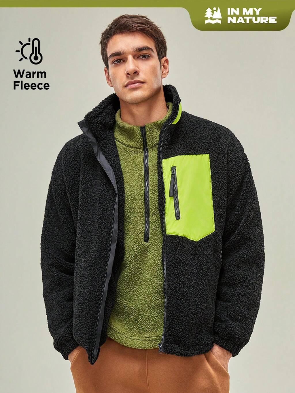 Men Zip Up Contrast Panel Outdoor Fleece Jacket
