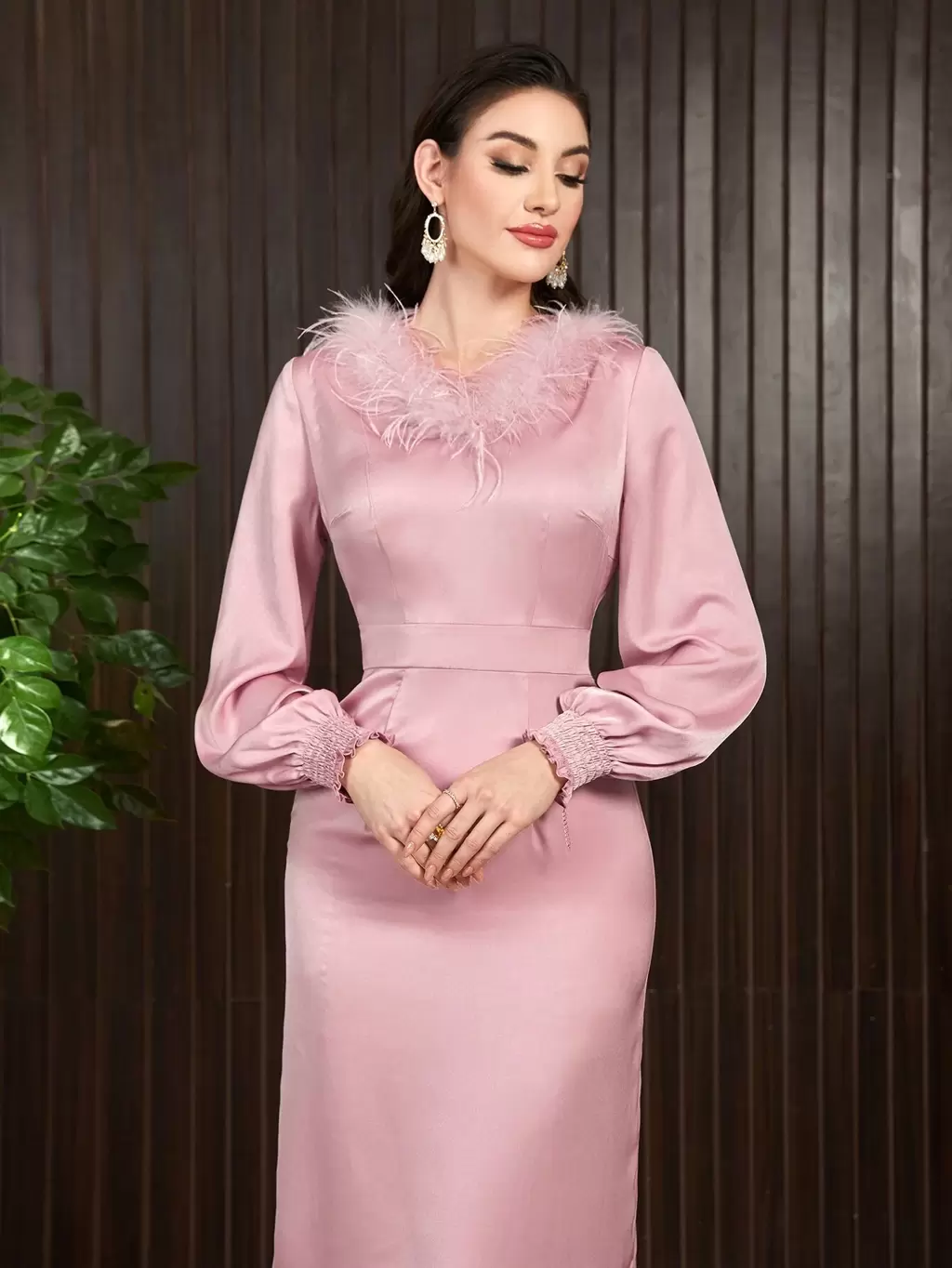 Patchwork Glitter Sweetheart Collar Plush Hem Dress Long Evening Dresses