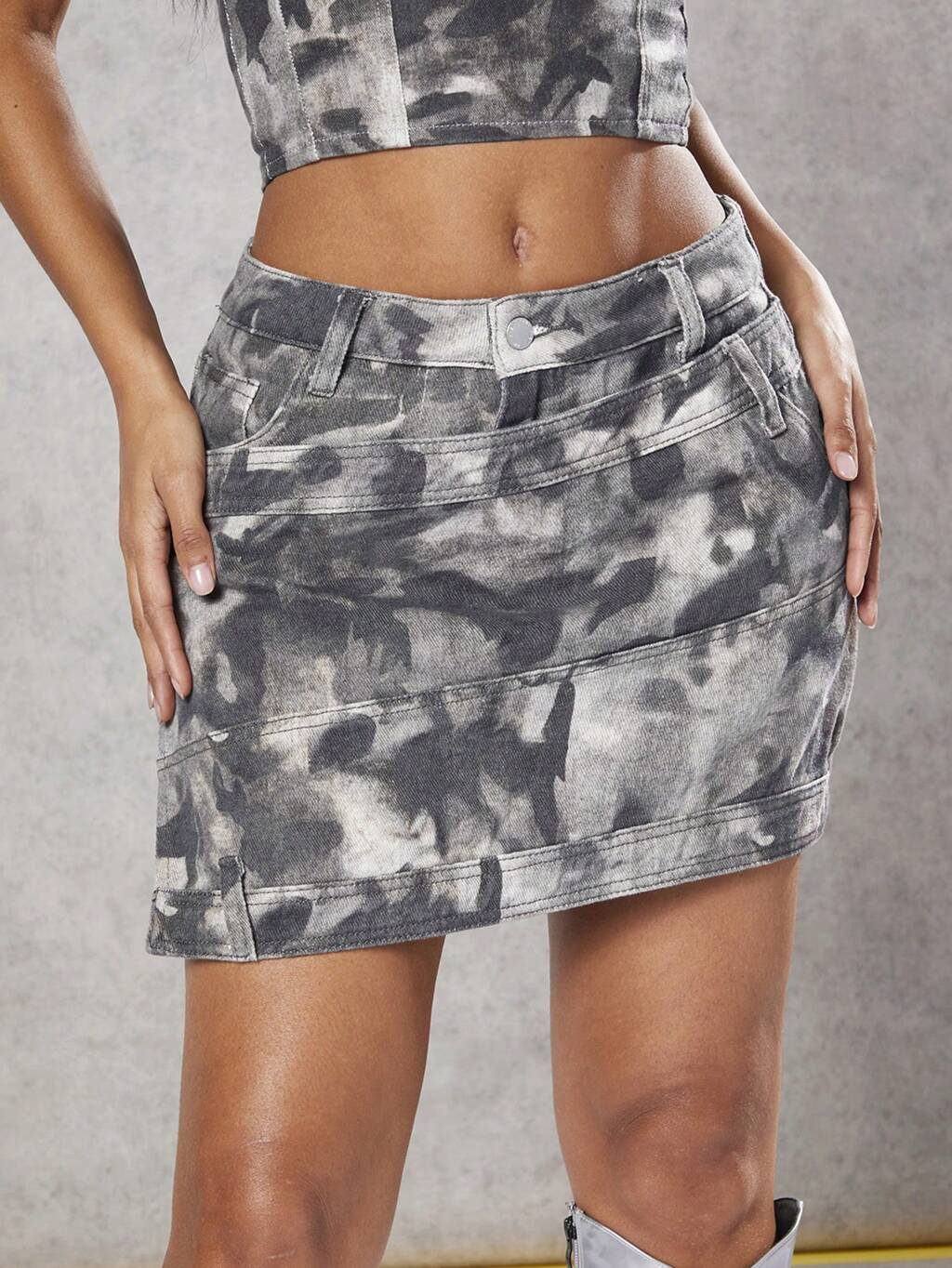 Statement Camouflage Denim High-Waisted Wrap Detail Miniskirt&Denim Skirt&Spring Outfits&Summer Bottoms