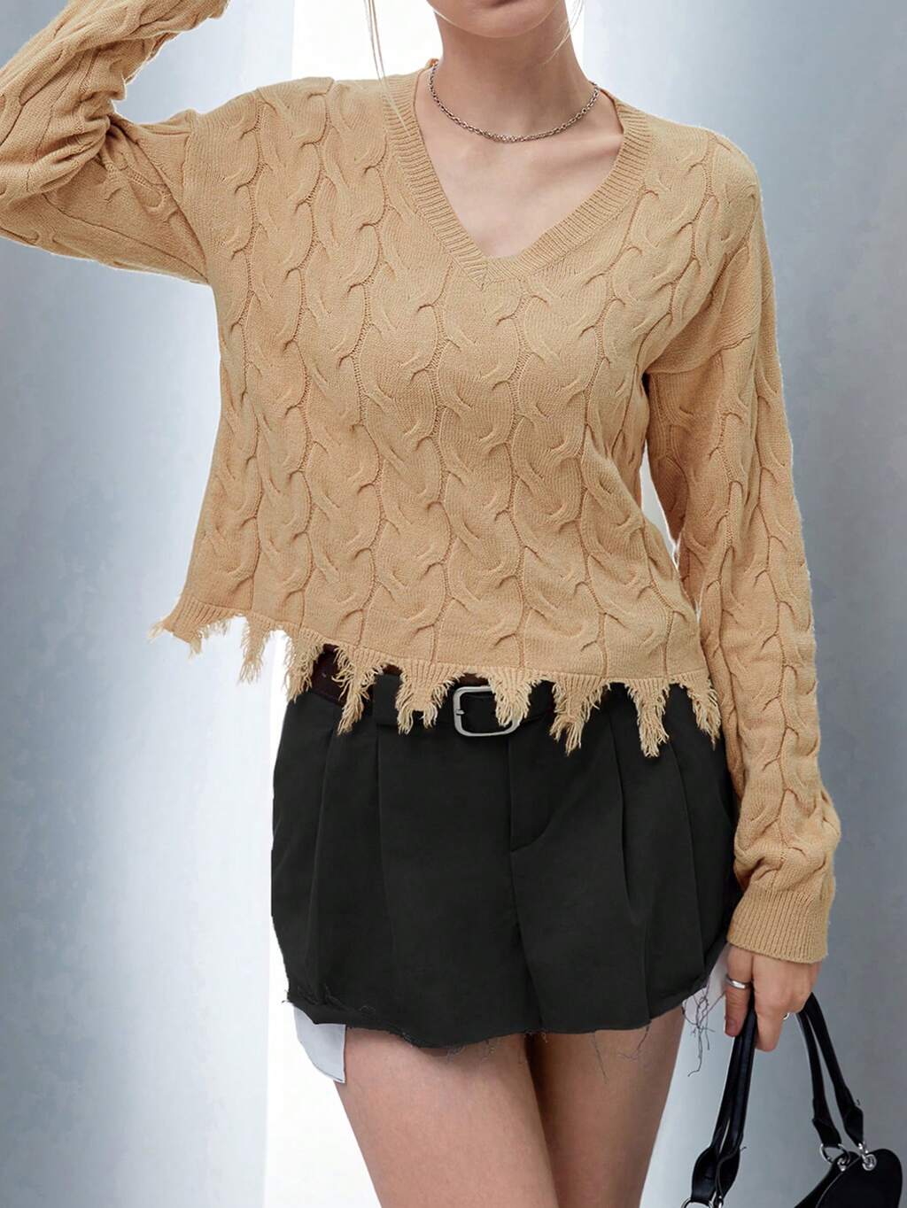 Cable Knit Drop Shoulder Crop Knit Pullover Fall Winter Sweater