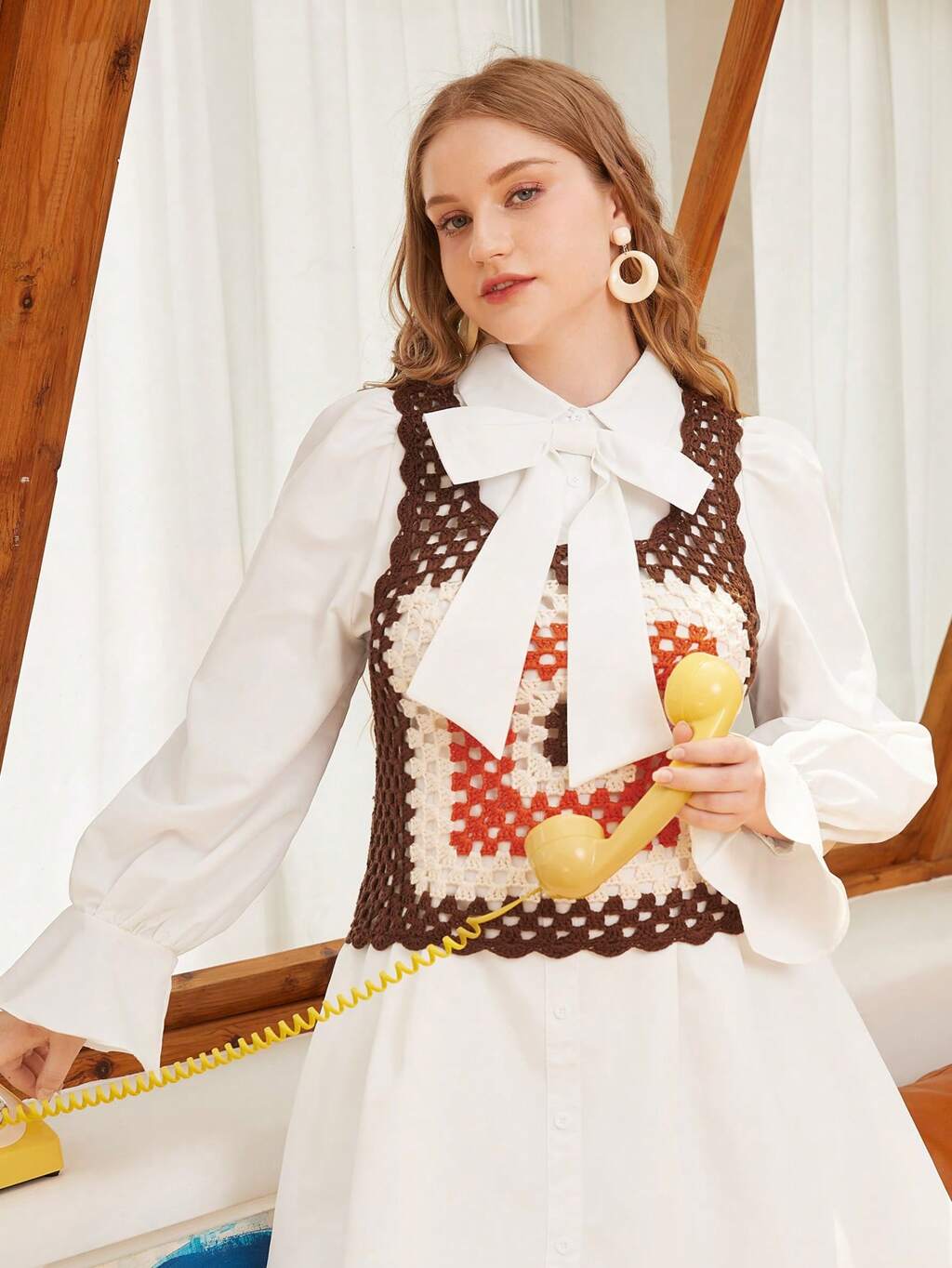 Plus 1pc Ruffle Trim Cable Knit Sweater Vest
