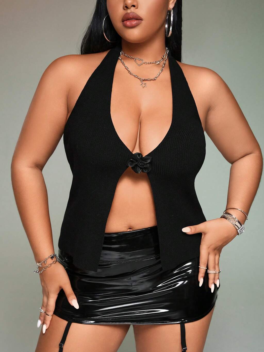 Plus Crisscross Cut Out Ribbed Knit Sweater