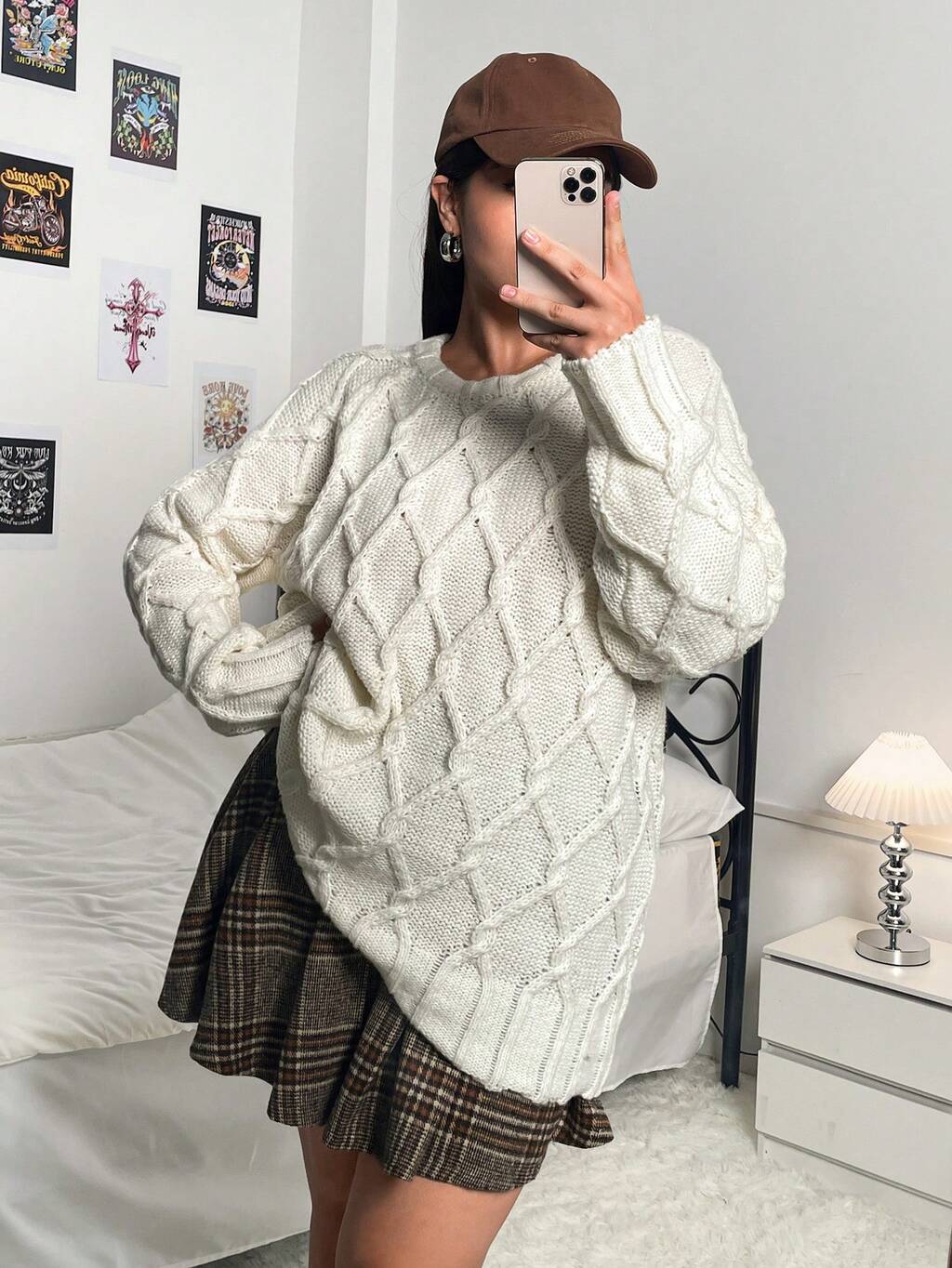 Plus Peplum Hem Cable Knit Sweater, For Winter Knit Pullover Fall Autumn