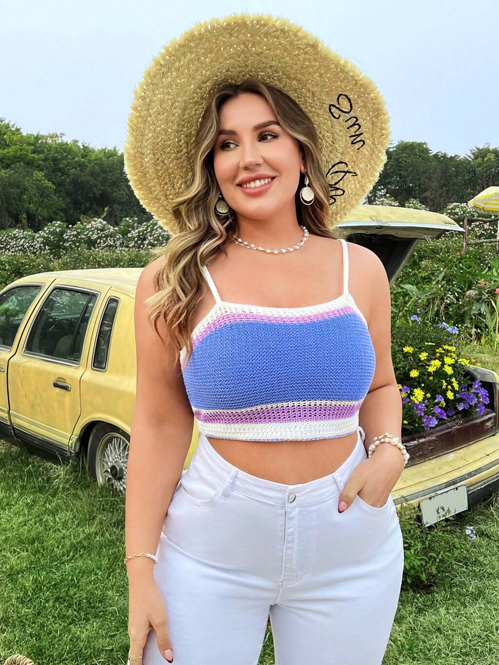 Plus Size Women's Knitted Top With Daisies