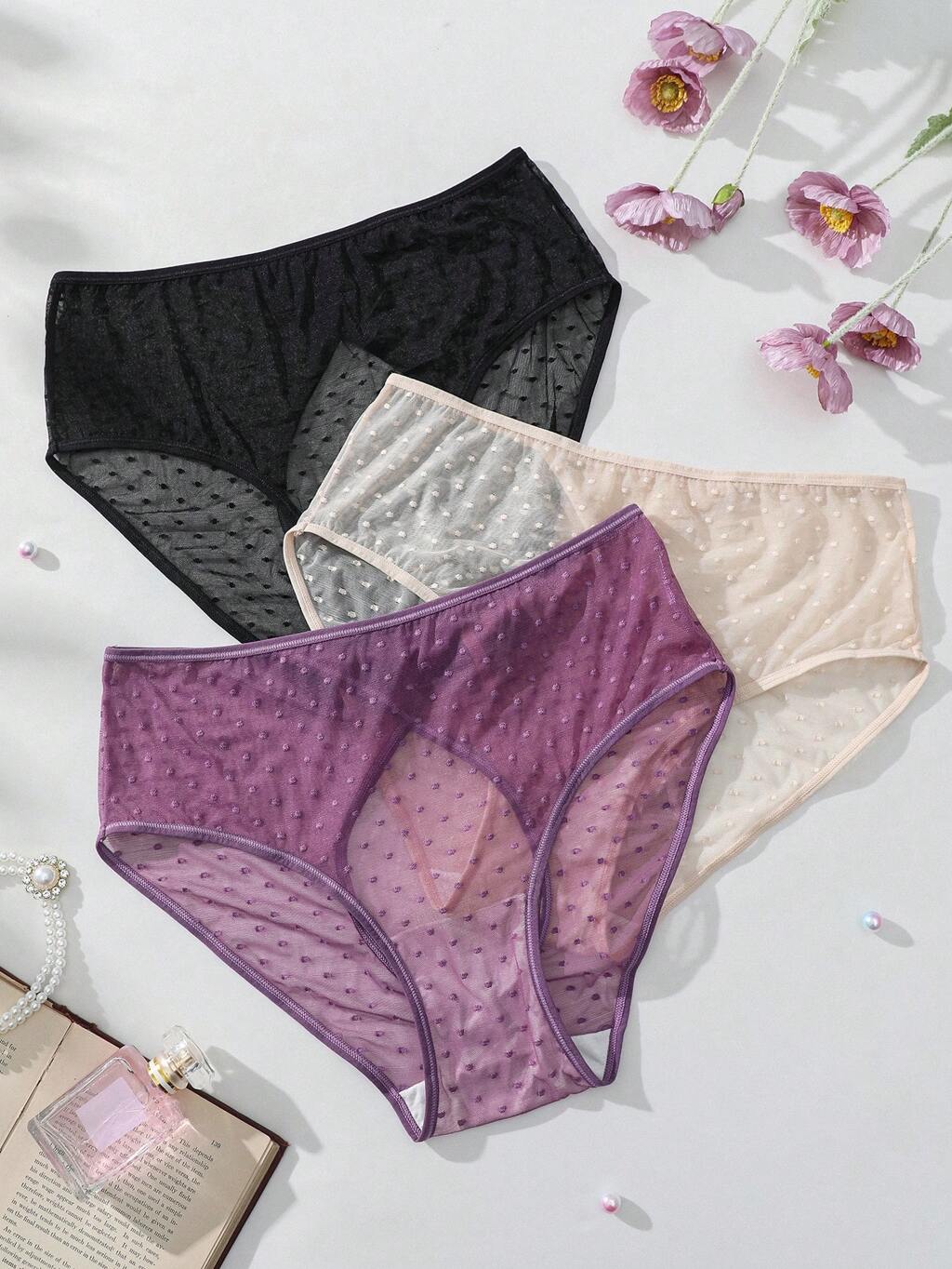 Ladies' Sexy Polka Dot Sheer Mesh Triangle Panties ,3 Pcs