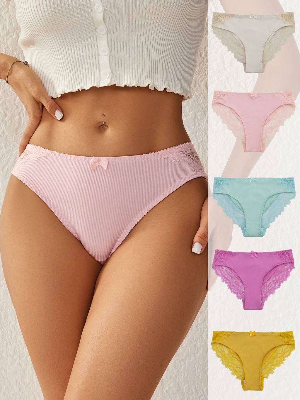 Women's Lace Patchwork Simple Triangle Panties With Bowknot , 5 Pcs
