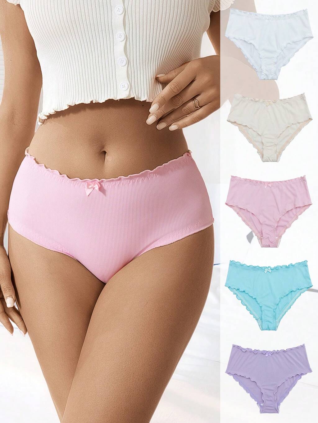 Women's Solid Color Triangle Panties With Cute Bow Decoration , 5 Pcs