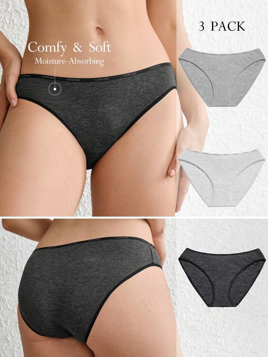 Women Casual Comfy Plain Knitted Fabric Multicolor Bikini Panties 3 Packs