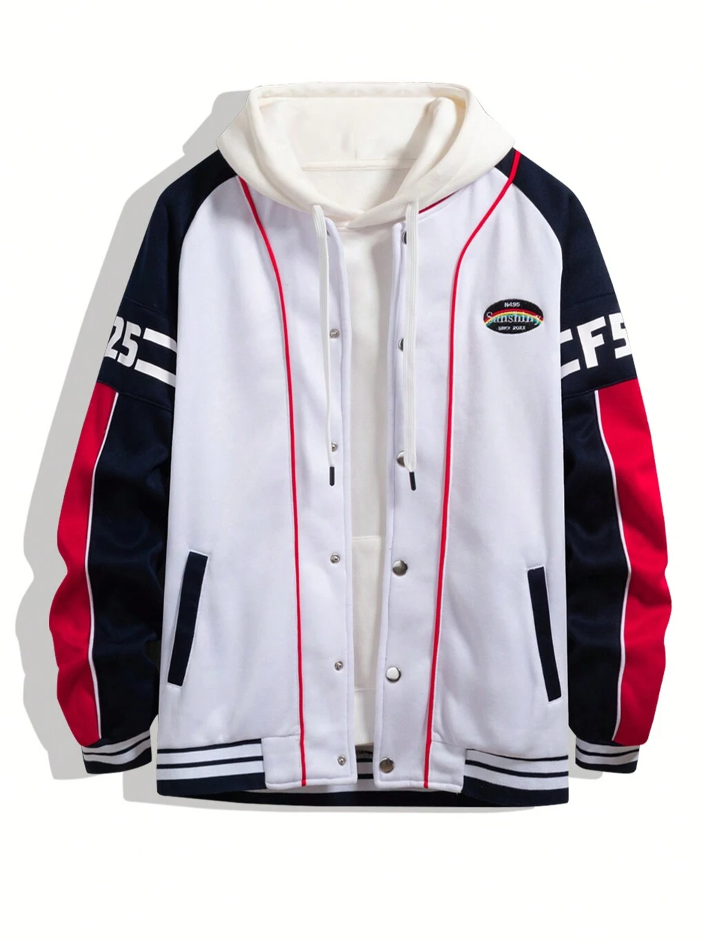 Oversized Men's Color Blocked Baseball Jacket With Letter Print
