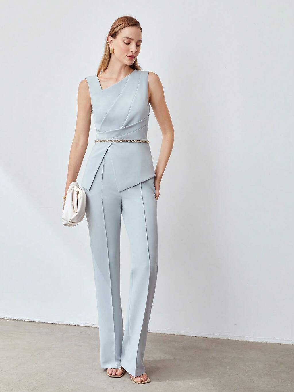 SQUARE NECK FAUX PEARL TRIM PEPLUM BLOUSE
