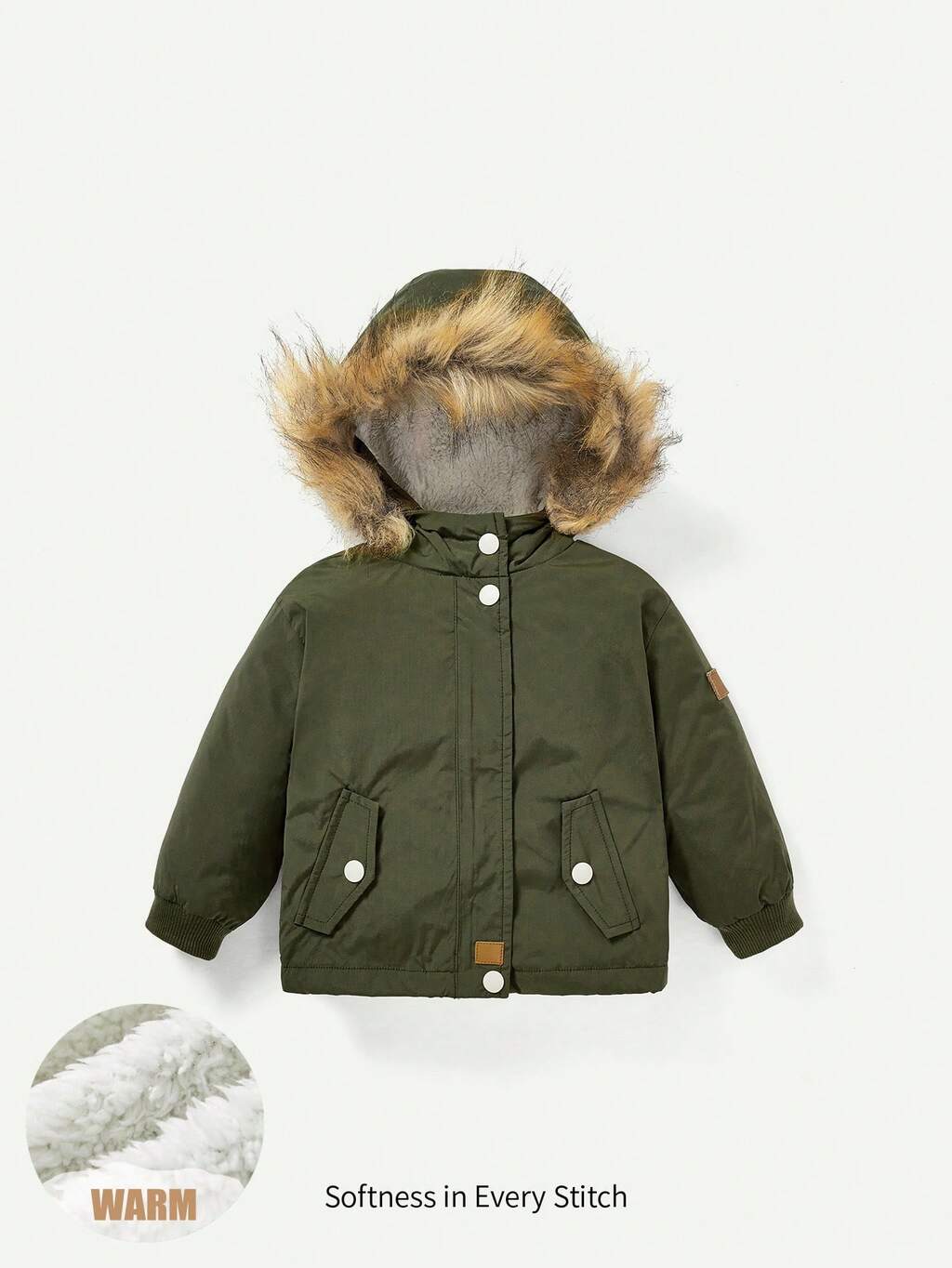 Baby Girl Fuzzy Trim Hooded Thermal Lined Jacket