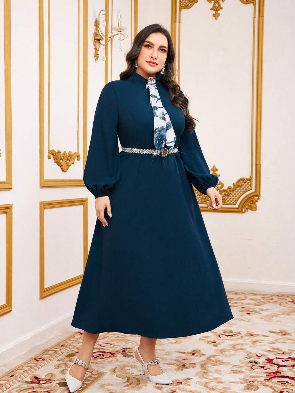 Plus Size Women'S False Tie Lantern Sleeve Arabian Dress