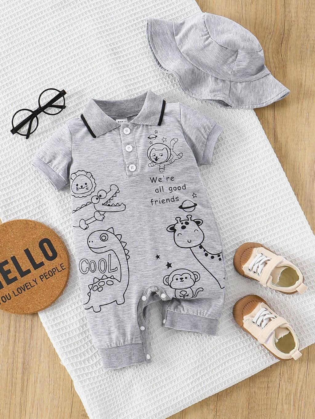 Baby Boy Summer Casual Cute Animal Slogan Pattern Short Sleeve Romper