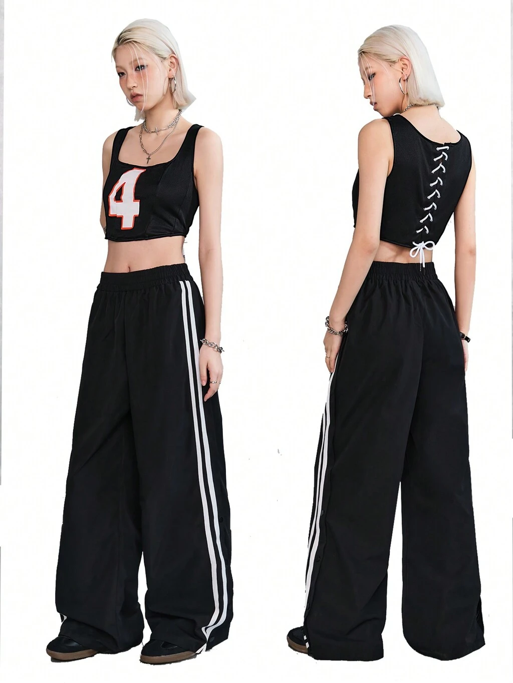 Mesh Digital Patchwork Structure Vest & Side Stripe Pants