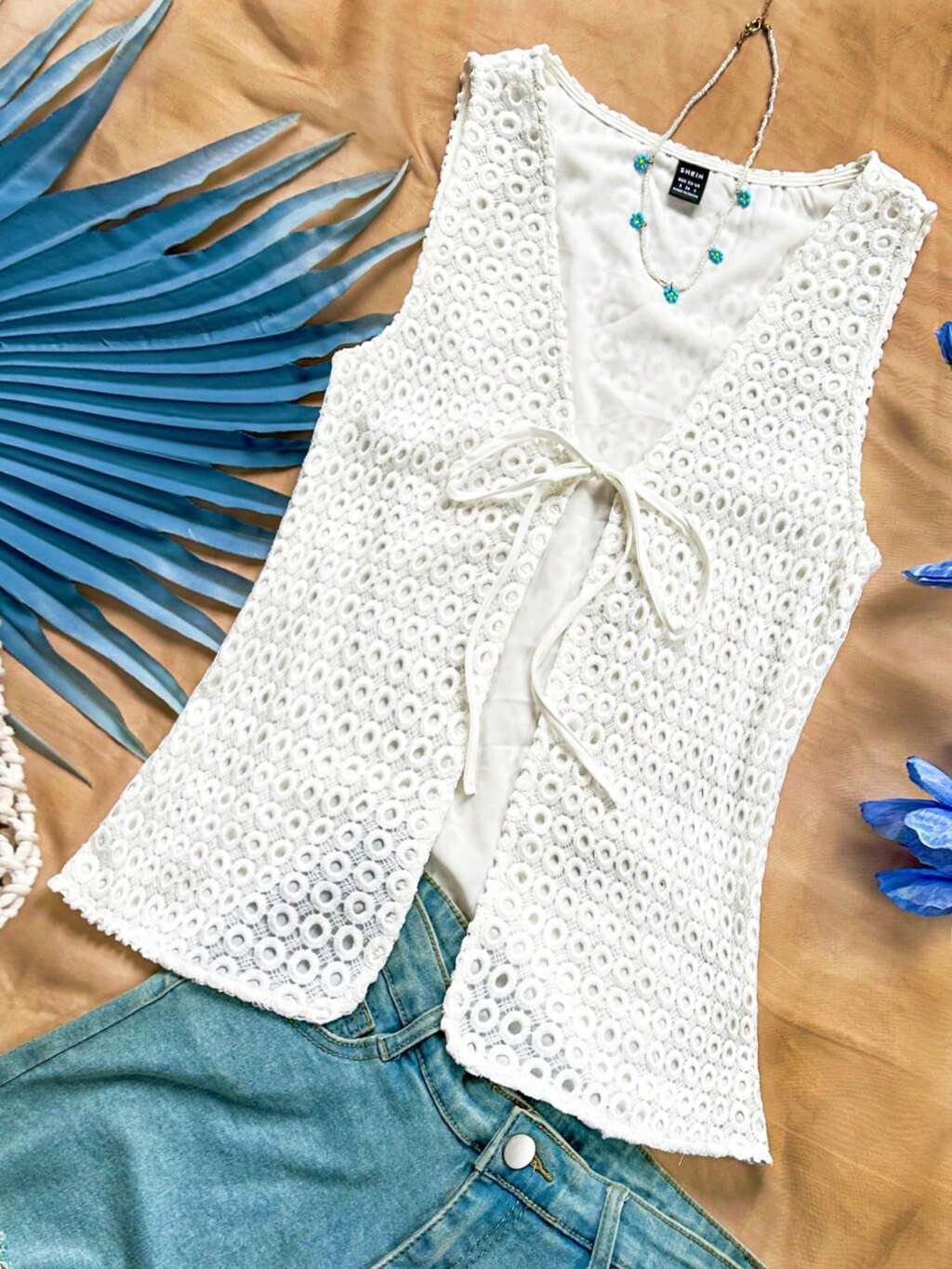 Women's Summer Vacation Beach Casual, Great For Easter, Back-To-School, Graduation, Party, Lunch, Garden Tea; Lovely Sleeveless Vest With Hollow Texture, Water-Soluble Embroidery, Loose Fit In White Color