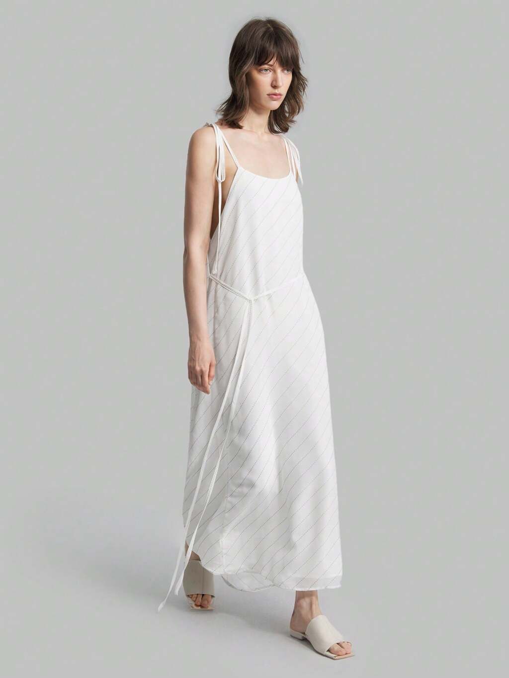Women's Simple Vertical Stripe Solid Color Off Shoulder Waist-Revealing Dress