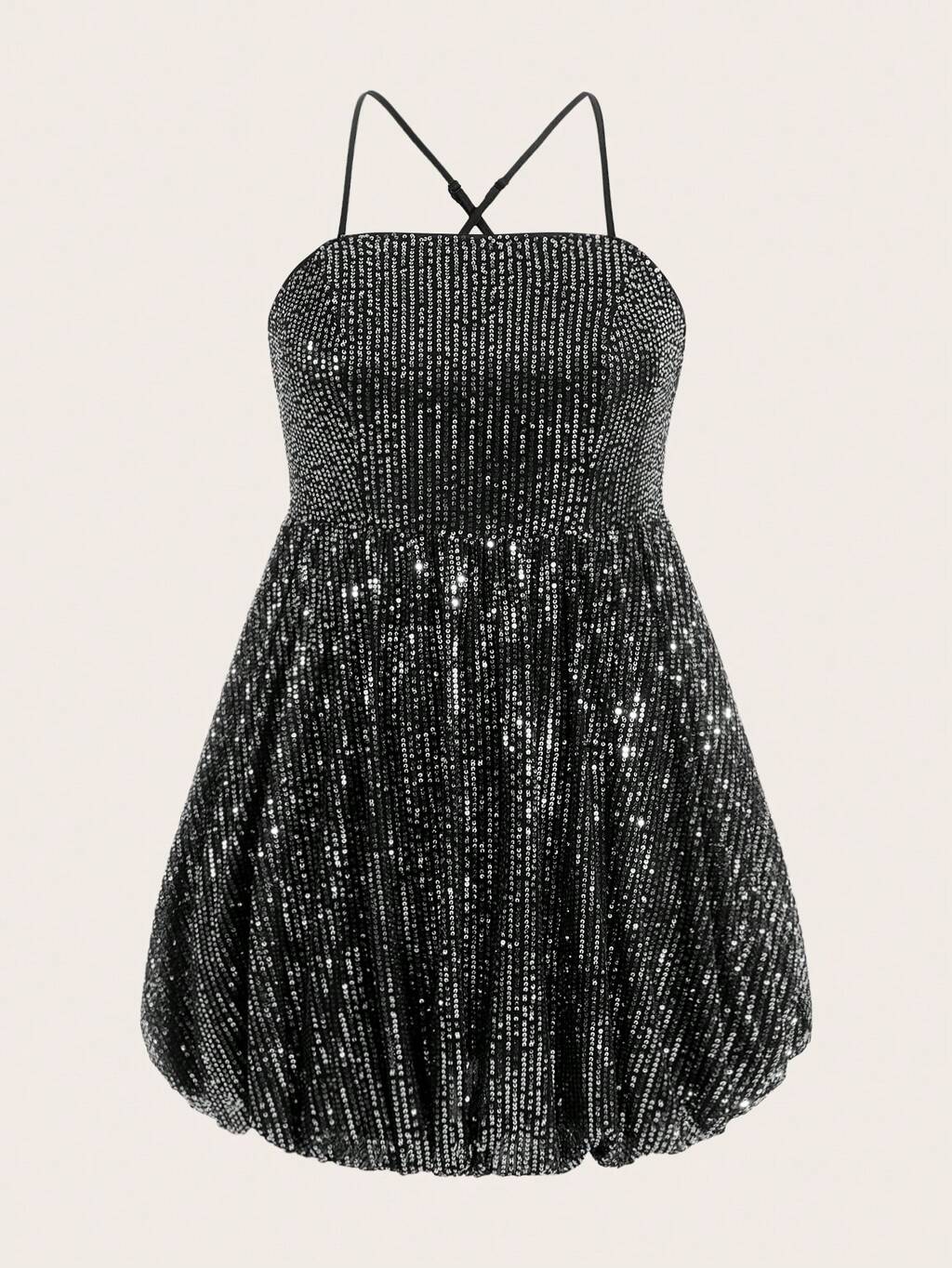 Plus Size Sequins Decor Spaghetti Strap Casual Dress