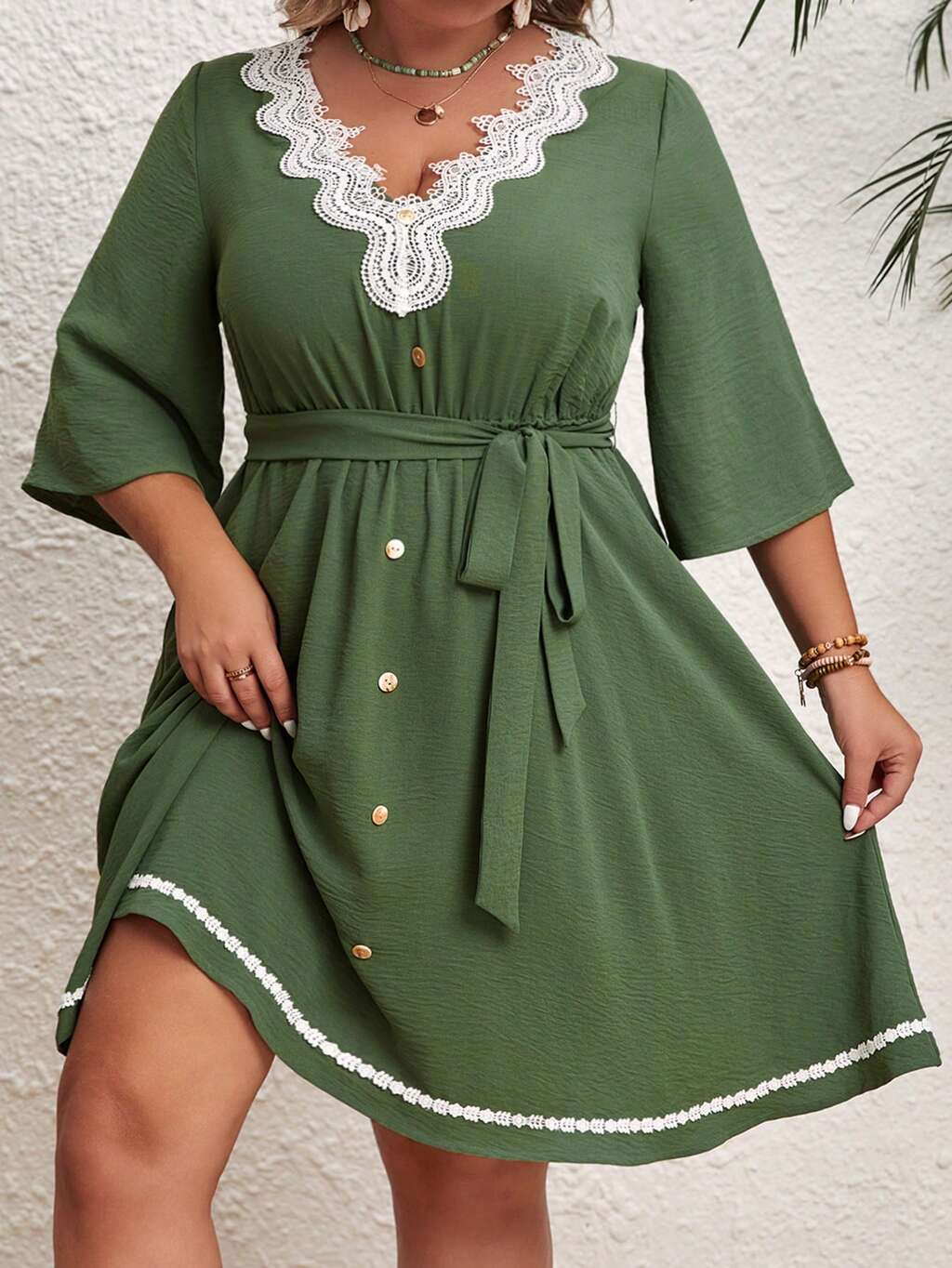 Plus Size Sheer Net Yoke Dress Without Waistband