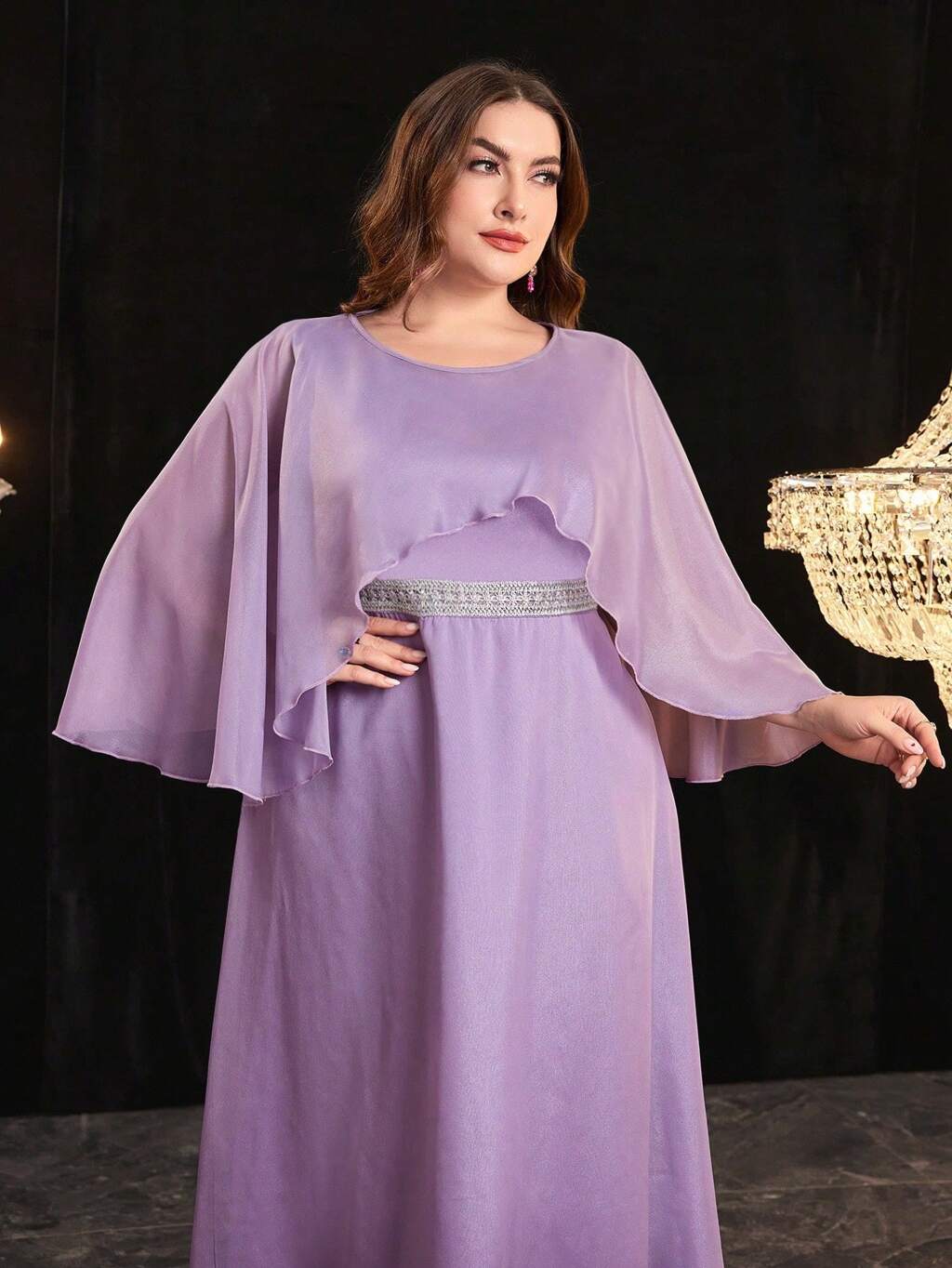 Plus Size Fashion Solid Color Patchwork Cape Dress Long Evening Dresses