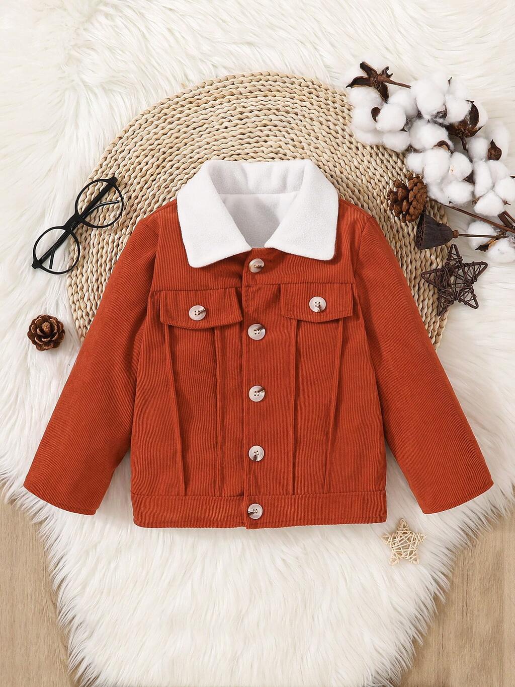 Baby Boy Borg Collar Flap Pockets Denim Vest Jacket & Tee