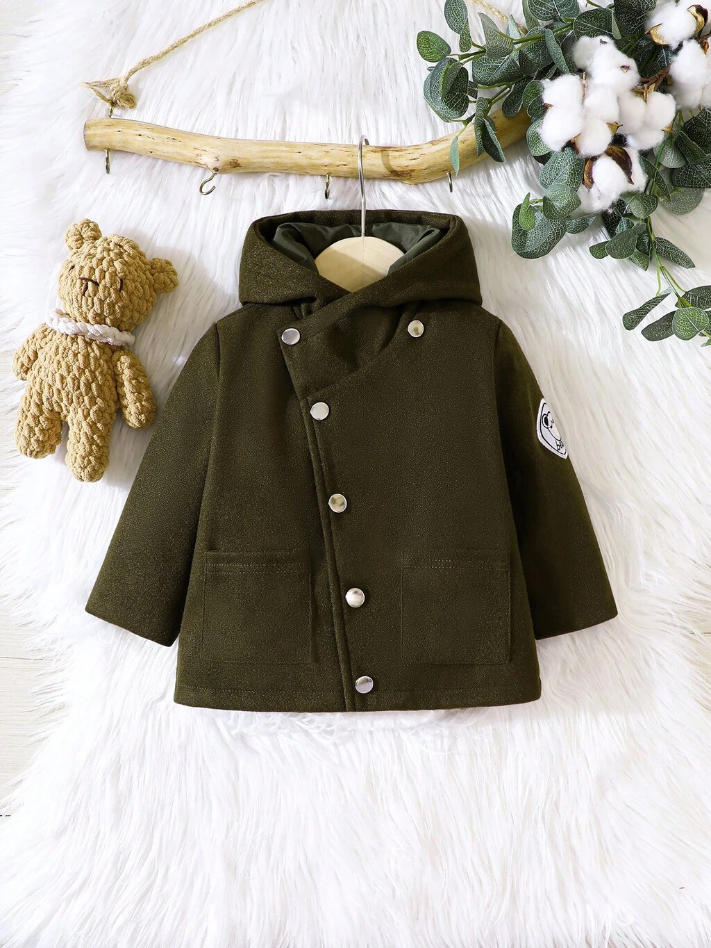 Baby Boy Letter Patched Dual Pocket Hooded Coat