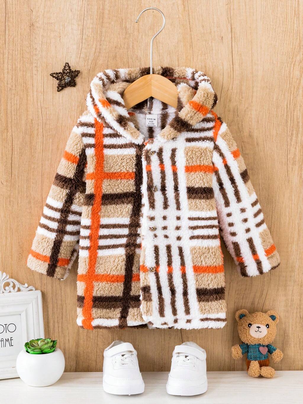 Baby Boy Plaid Print Hooded Teddy Coat