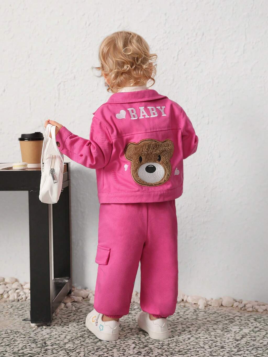 Baby Girl Casual Bear Patterned Long Sleeve Fleece Jacket And Pants Set