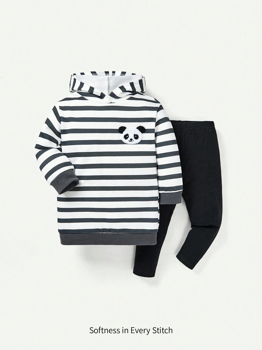 Baby Girl Panda Patched Striped Hoodie & Leggings