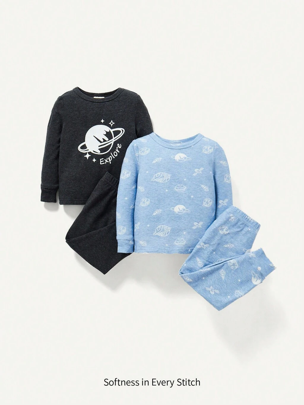 Baby Boy Snug Fit Pajama Set With Cartoon Space Pattern: Long Sleeve Top And Pants, 4pcs