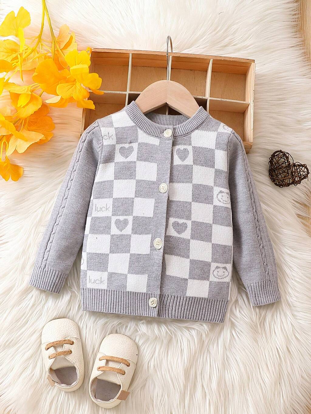 Baby Boys' Heart Checkerboard Pattern Cardigan