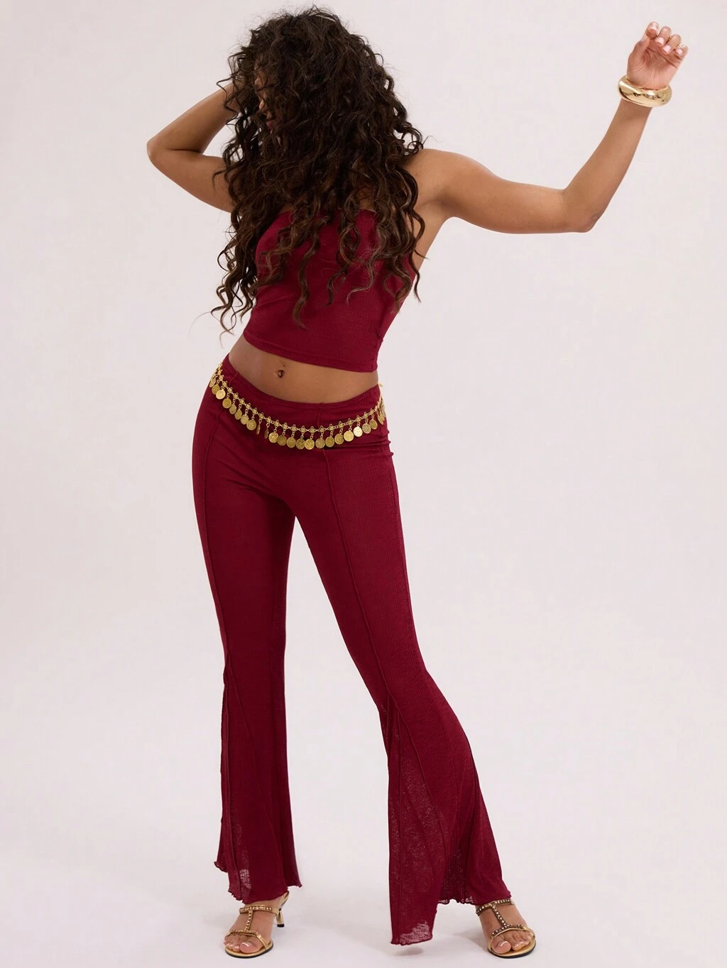 Textured Sheer Seam Fit Flare Trousers Boho Summer Cute Vacation Chic Elegant Holiday Casual
