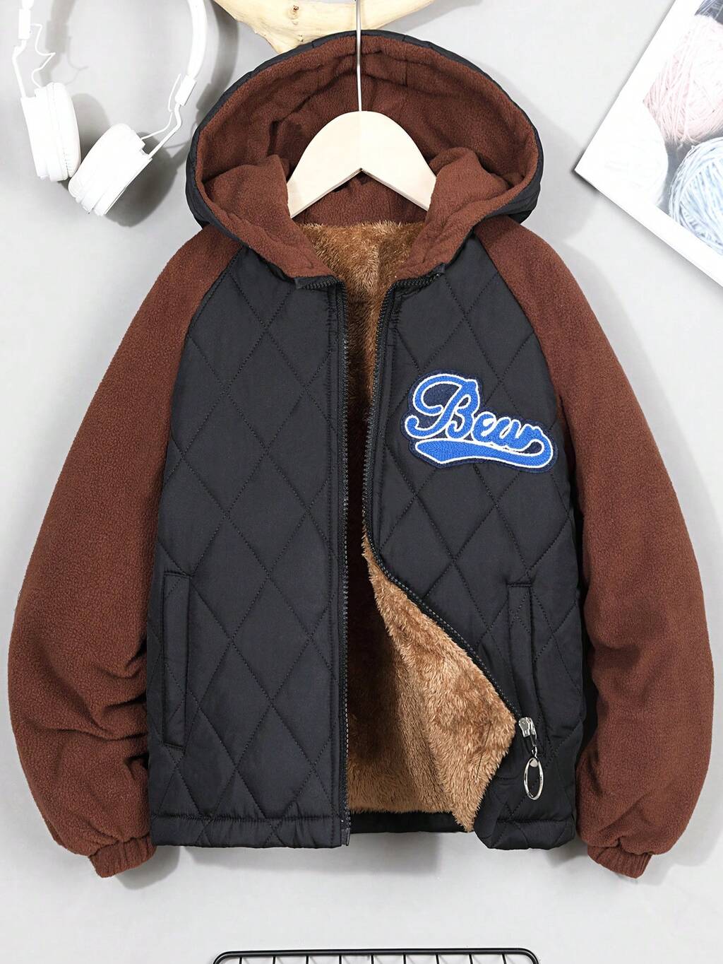 Boys' Color Block Letter Patch Fleece Hooded Jacket