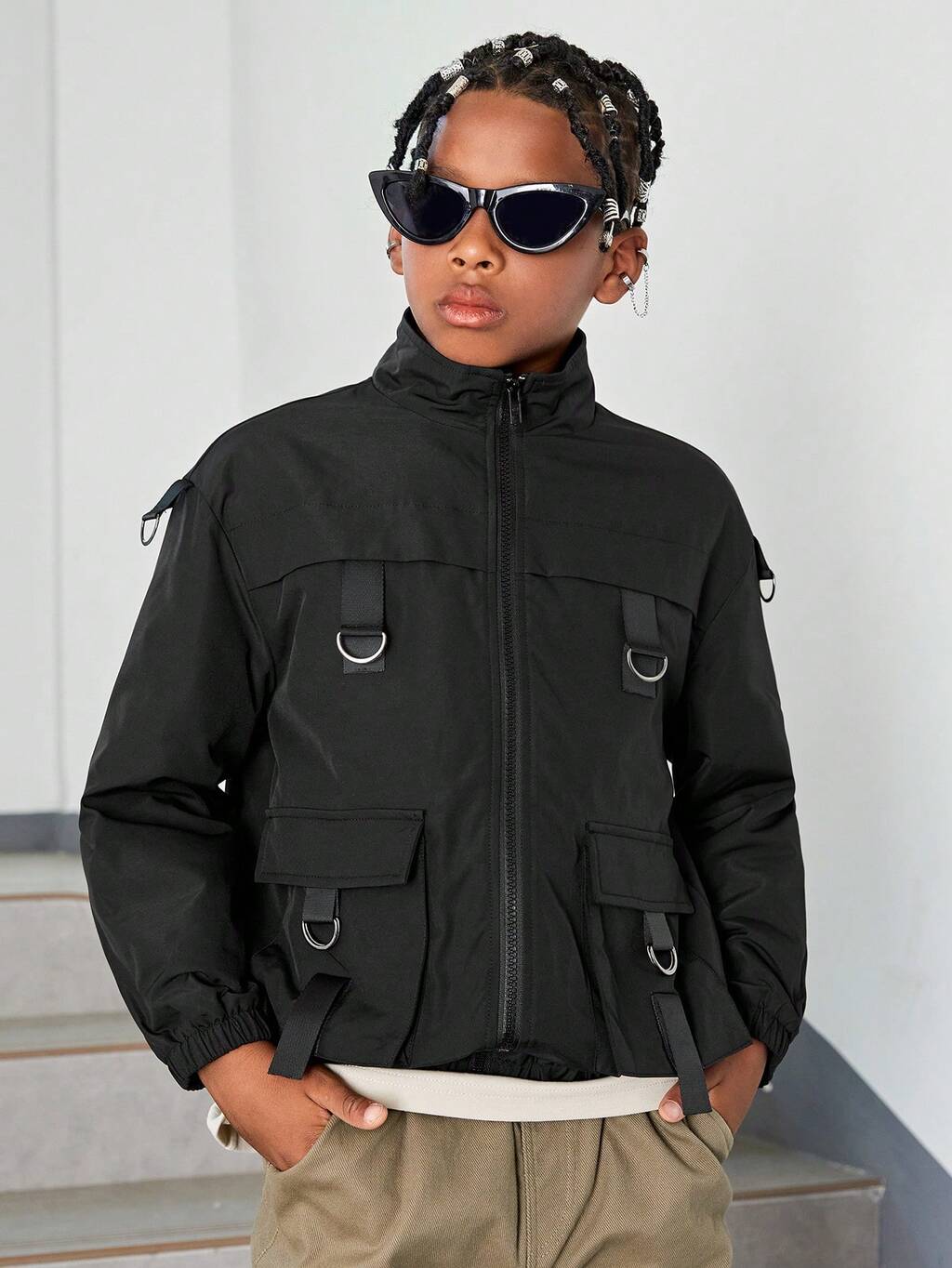 Tween Boy Dual Pocket Drop Shoulder 3D Ear Design Hooded Coat
