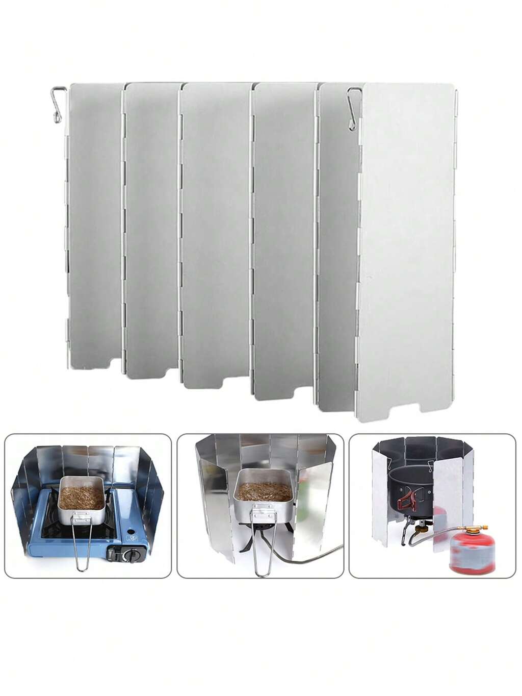 10pcs Outdoor Camping Stove Windshield, Lightweight Foldable Aluminum Alloy Windscreen With Pegs And Storage Bag, Kitchen Stuff