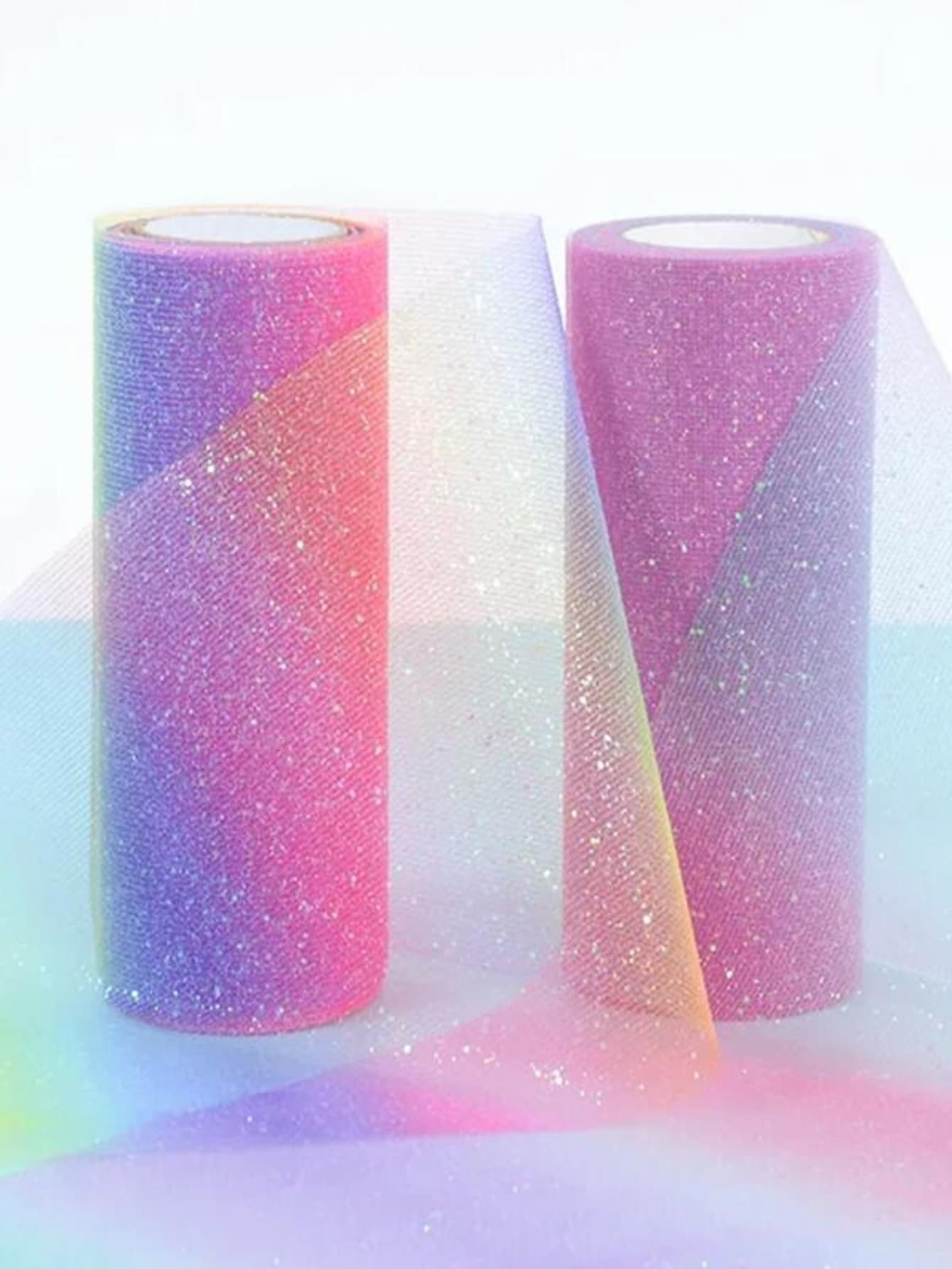 1pc Rainbow Gradient Fabric Glitter Rainbow Gift Wrapping Ribbon, Christmas Valentine Day