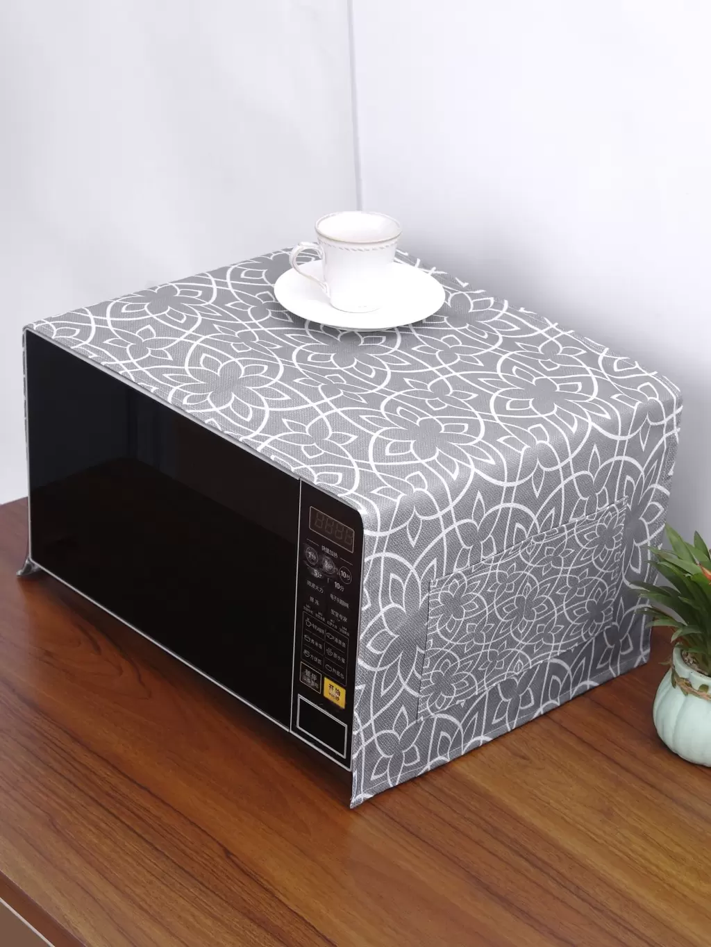 1pc Geometric Flower Printed Storage Dustproof Cover, Creative Linen-Like Microwave/Washing Machine/Fridge Decorative Dust Proof Cover With Pocket,Kitchen Decor,Household Items,Mother's Day Gift,Bedroom Decor,Garden,Kitchen Decor,Summer,Beach,Travel Essentials,Room Decor,Squishy,Graduation