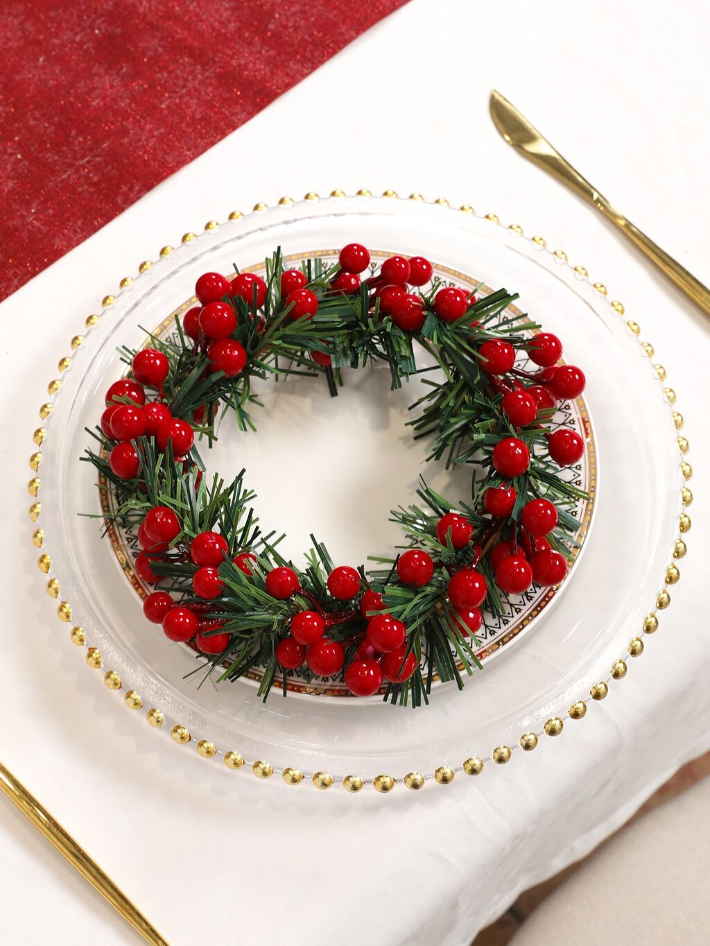 1pc Simulated Holly Pine Circle - Chinese New Year Decoration. New Year Gifts And Party Supplies. Wedding Scene Desktop Decoration Flower Wall Decoration Hanging Items