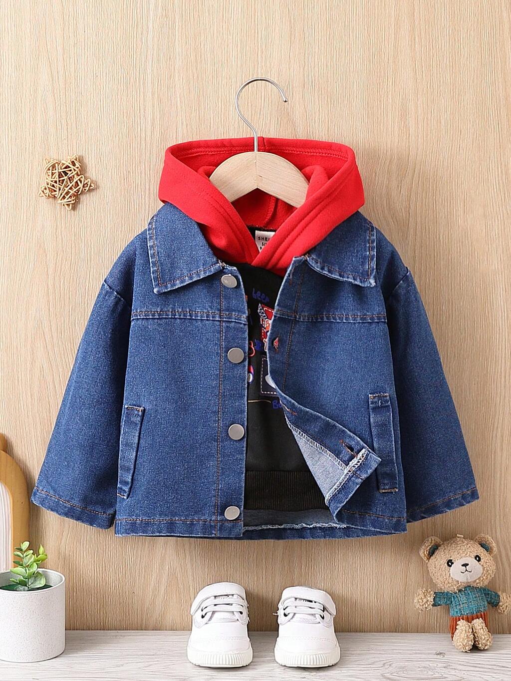 Baby Boy Solid Button Front Jacket & Letter Graphic Contrast Hoodie