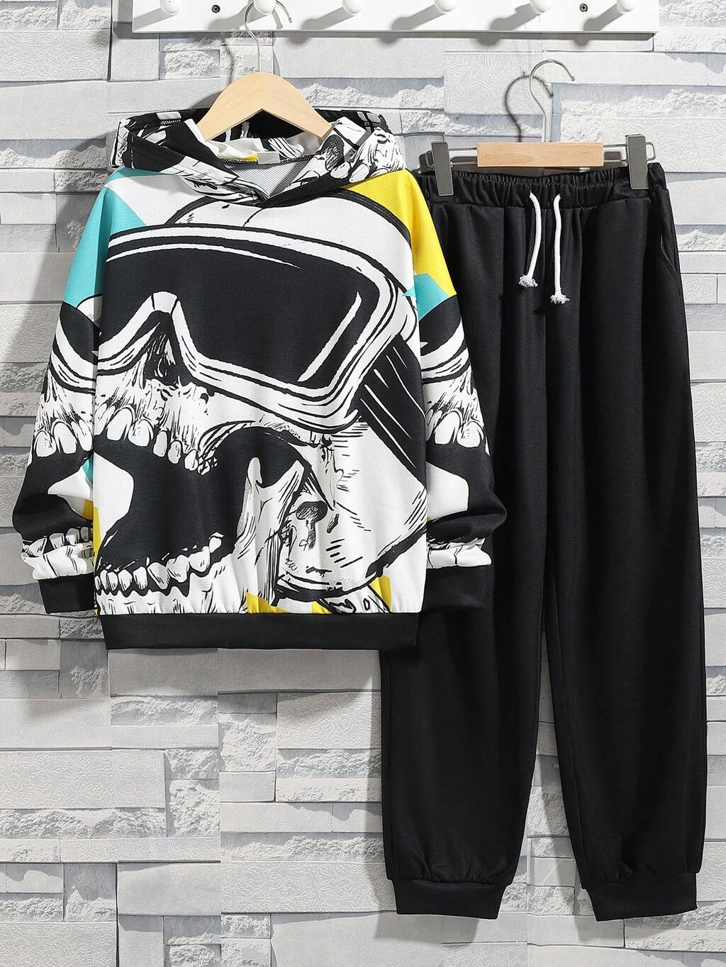 Tween Boys' Loose Casual Patterned Sweatshirt & Jogger Pants Set