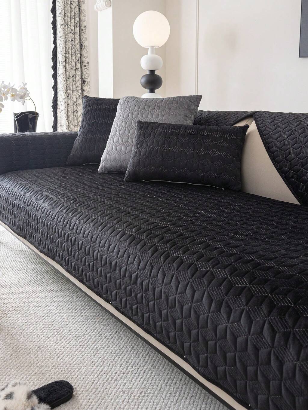 1pc Geometric 3D Solid Color Velvet Quilted Sofa Cushion, Minimalist Style With Anti-Slip Soft Multifunctional Dirt-Resistant Dust-Proof Holiday Decor Sofa Cover, Suitable For All Seasons