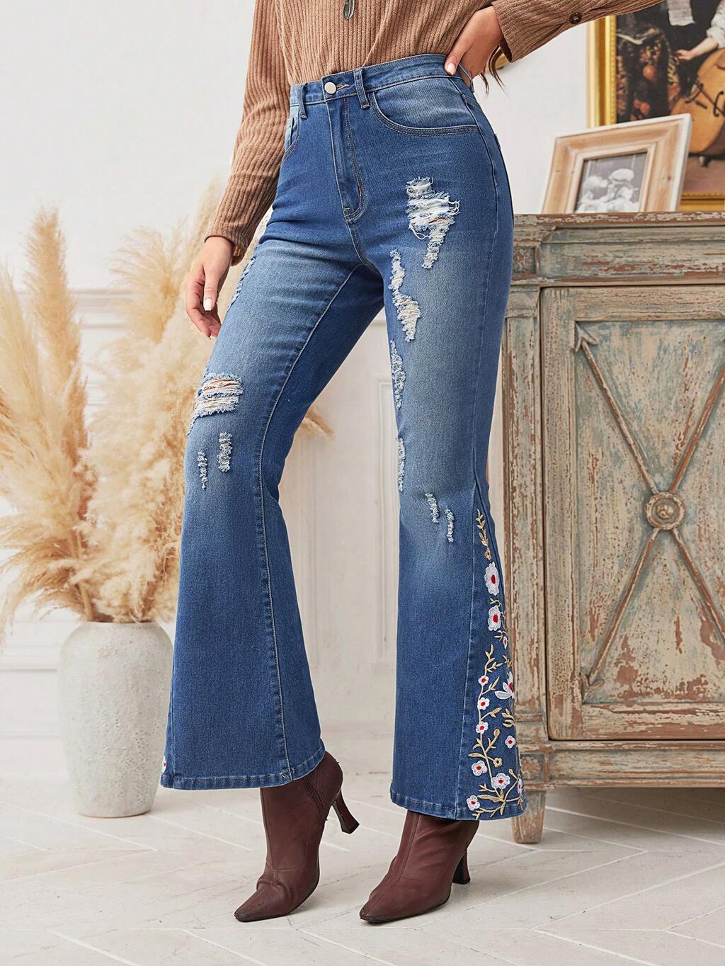 Ladies' Distressed Jeans Straight Leg Denim Pants