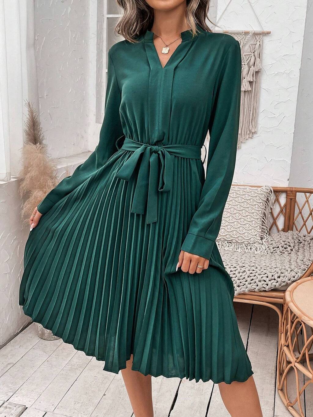 Women's Gradient Pleated Belt Dress