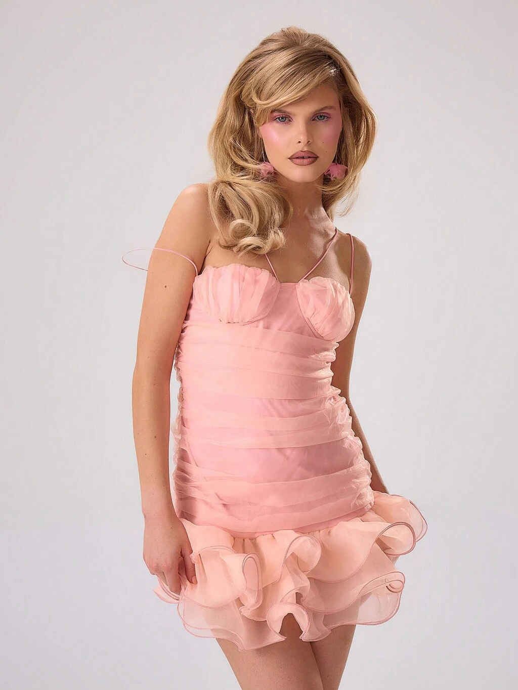 Organza Ruched Ruffle Hem Mini Dress Sexy Cute Spring Summer Party Going Out Vacation