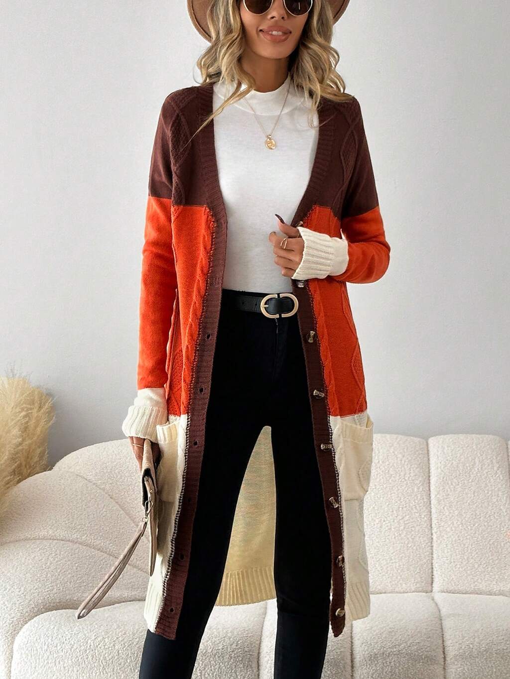 Colorblock Button Front Cardigan