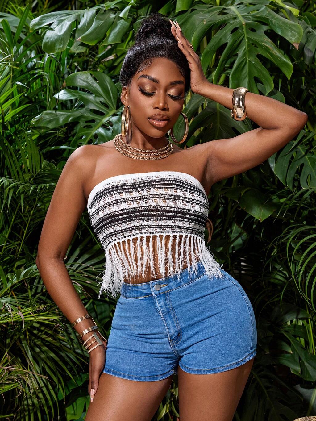 Summer Fashionable Distressed Tight Cropped Strapless Knitted Top