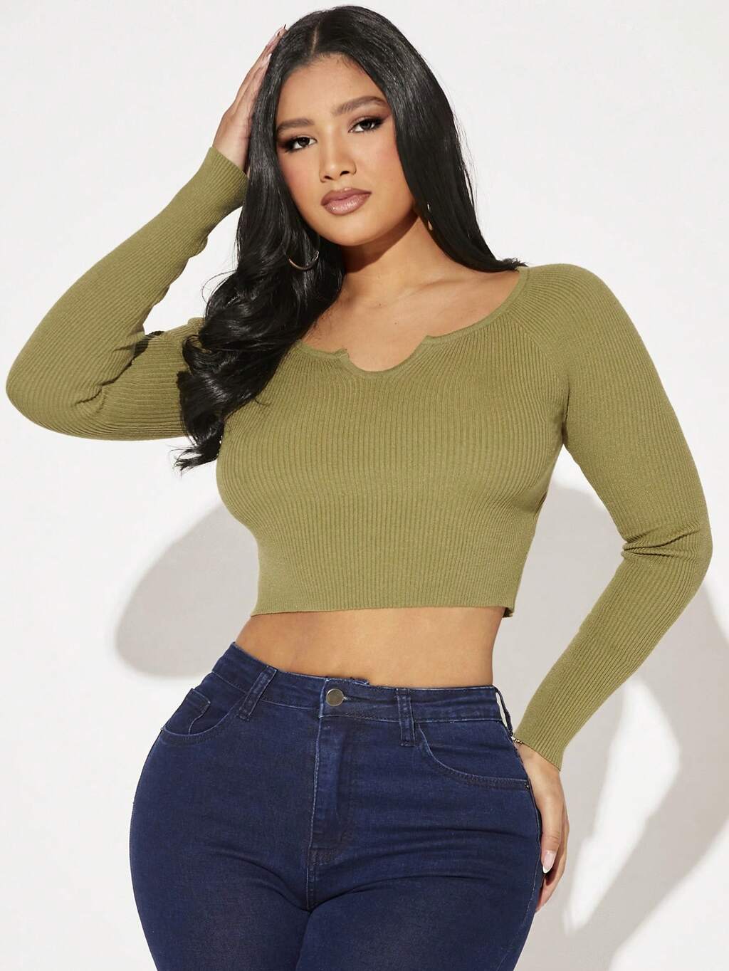 Solid Raglan Sleeve Crop Knit Pullover Fall Winter Sweater