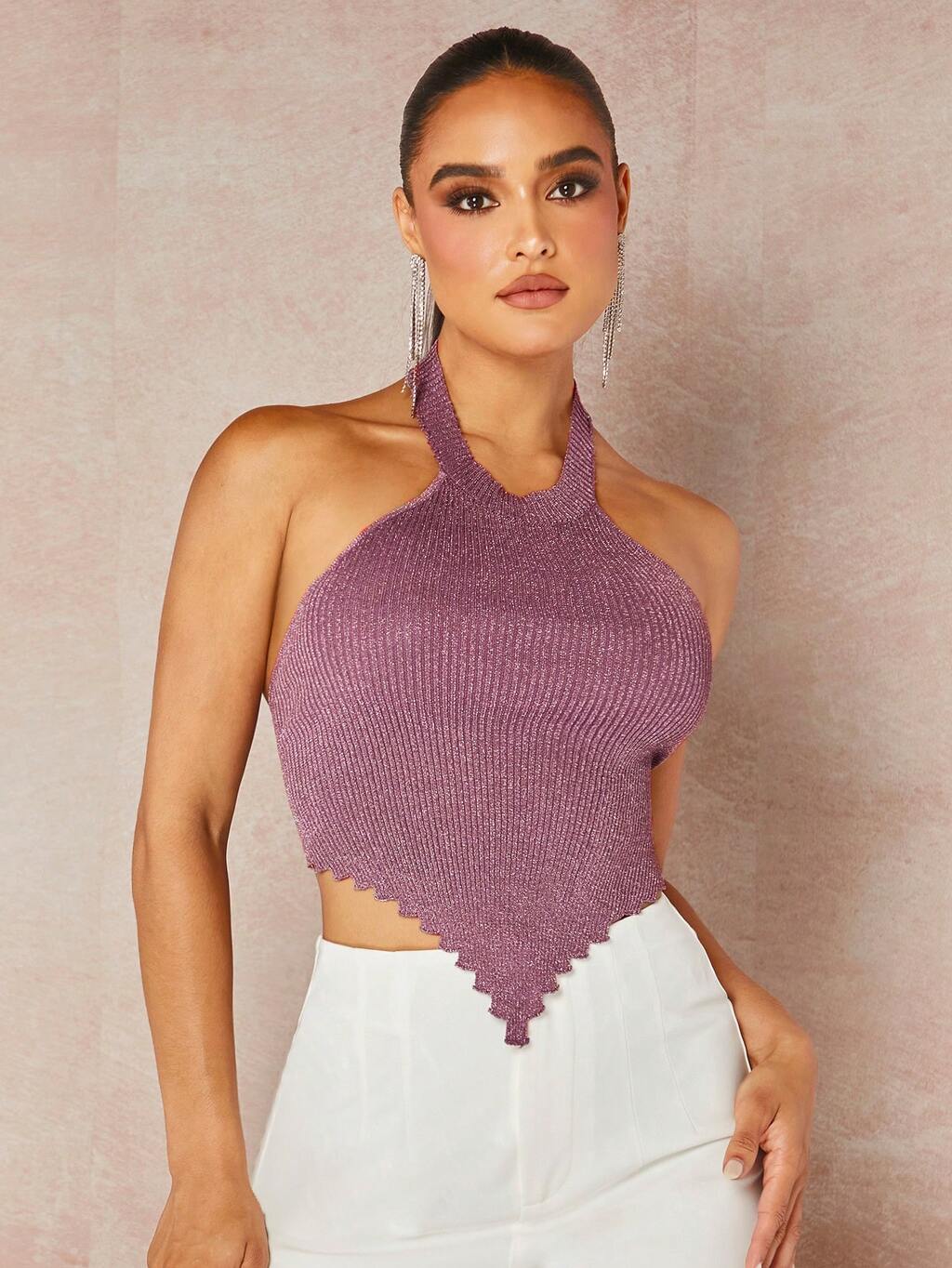Solid Backless Halter Knit Top