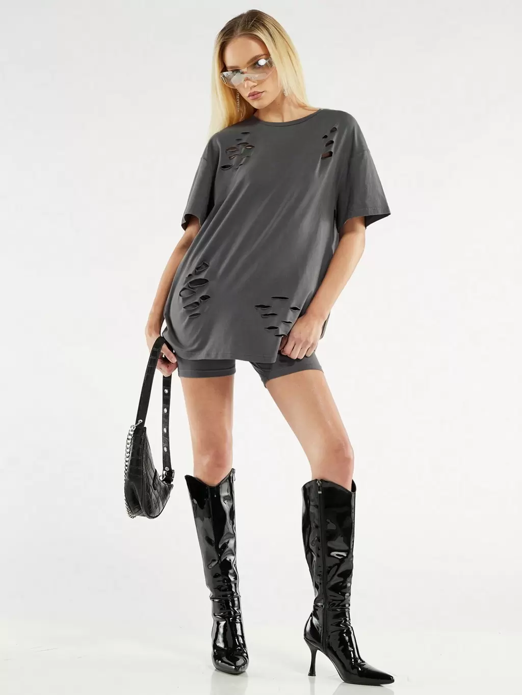 Women's 2pcs Comfortable Plain Distressed Outfit For Home And Leisure