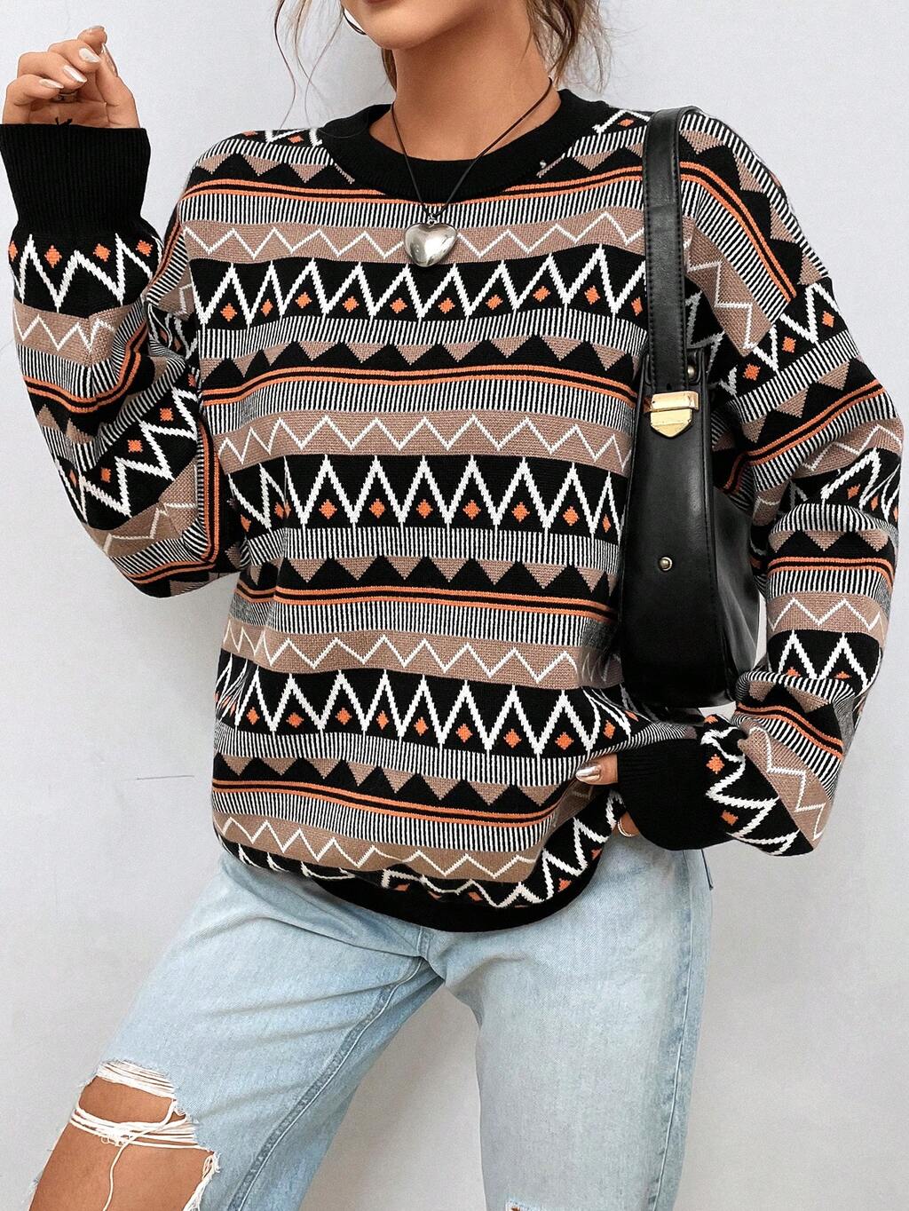 Geo Pattern Drop Shoulder Sweater