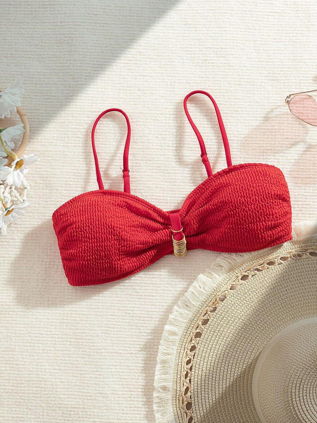 Women's Solid Color Textured Bikini Set, Bikini Set Outfit Beach Swimwear Bathing Suit Summer Beach